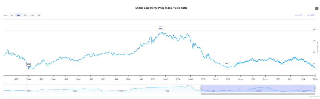 Today the index is near 1.5, its lowest recent level since the early pandemic period. This narrowing reflects an uncommon market dynamic – gold gained about 65% in 2025, compared with the S&P 500’s 17.88% rise. The contrast suggests a degree of economic caution not yet mirrored in equity volatility, potentially signaling that investors may be positioning defensively despite resilient stock prices. I think this shows that some market participants could be worried about stickier inflation from the AI infrastructure spending, tariffs or the geopolitical risk from Trump’s radically changing foreign policy. The world looks much less stable today than in the past periods and I think gold is signaling to watch out for the effects of a new cold war.
